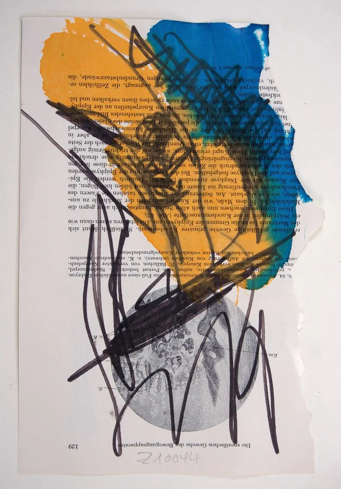 | Mediums | ca, color ink on bookpage, marker |